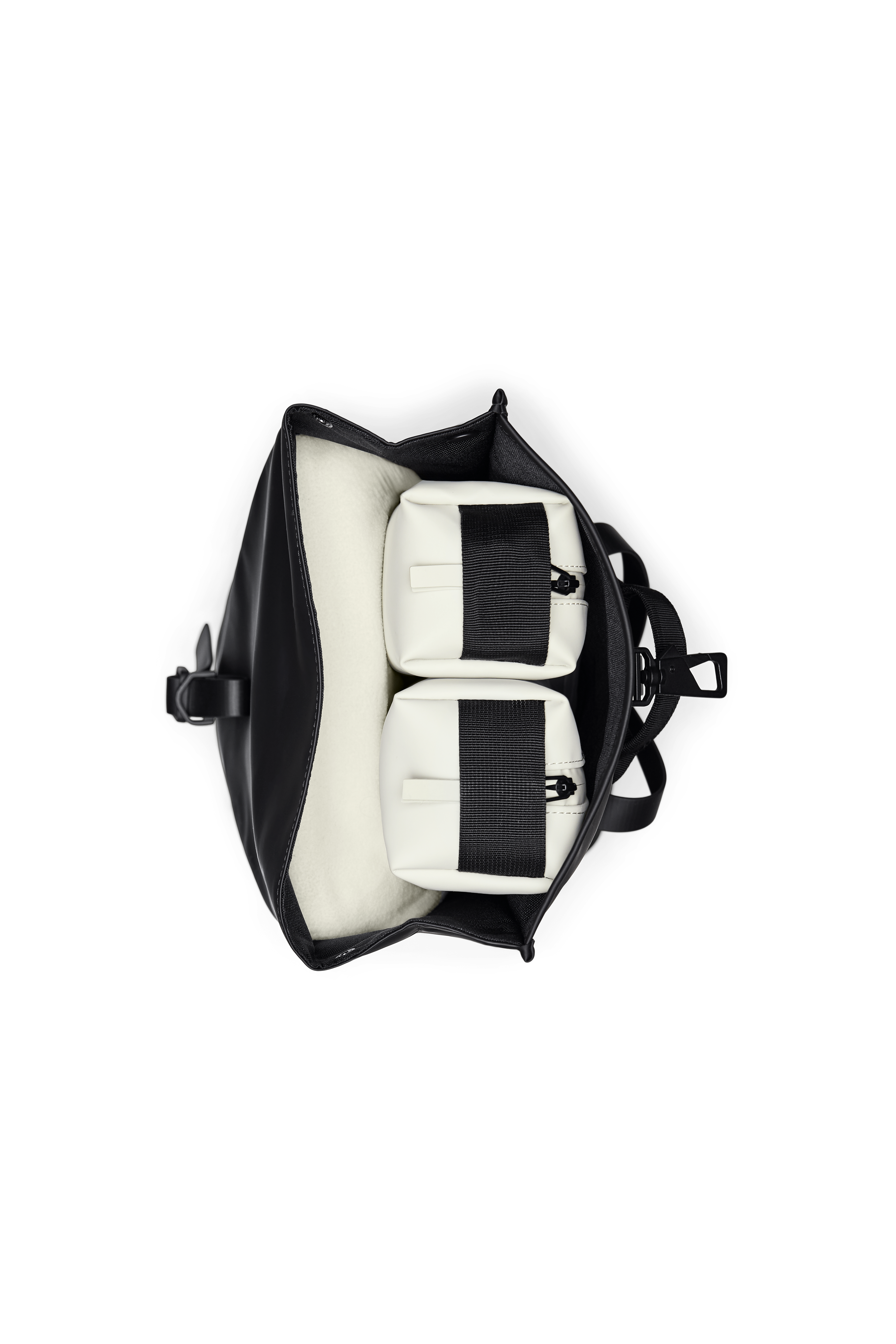 Rolltop Rucksack Mini har omsorgsfullt utformats för att hålla nederbörd ute under din resa. För att skydda dina viktigaste saker från regn, vik ihop den ordentligt och säkra med den karaktäristiska karbinhaken.