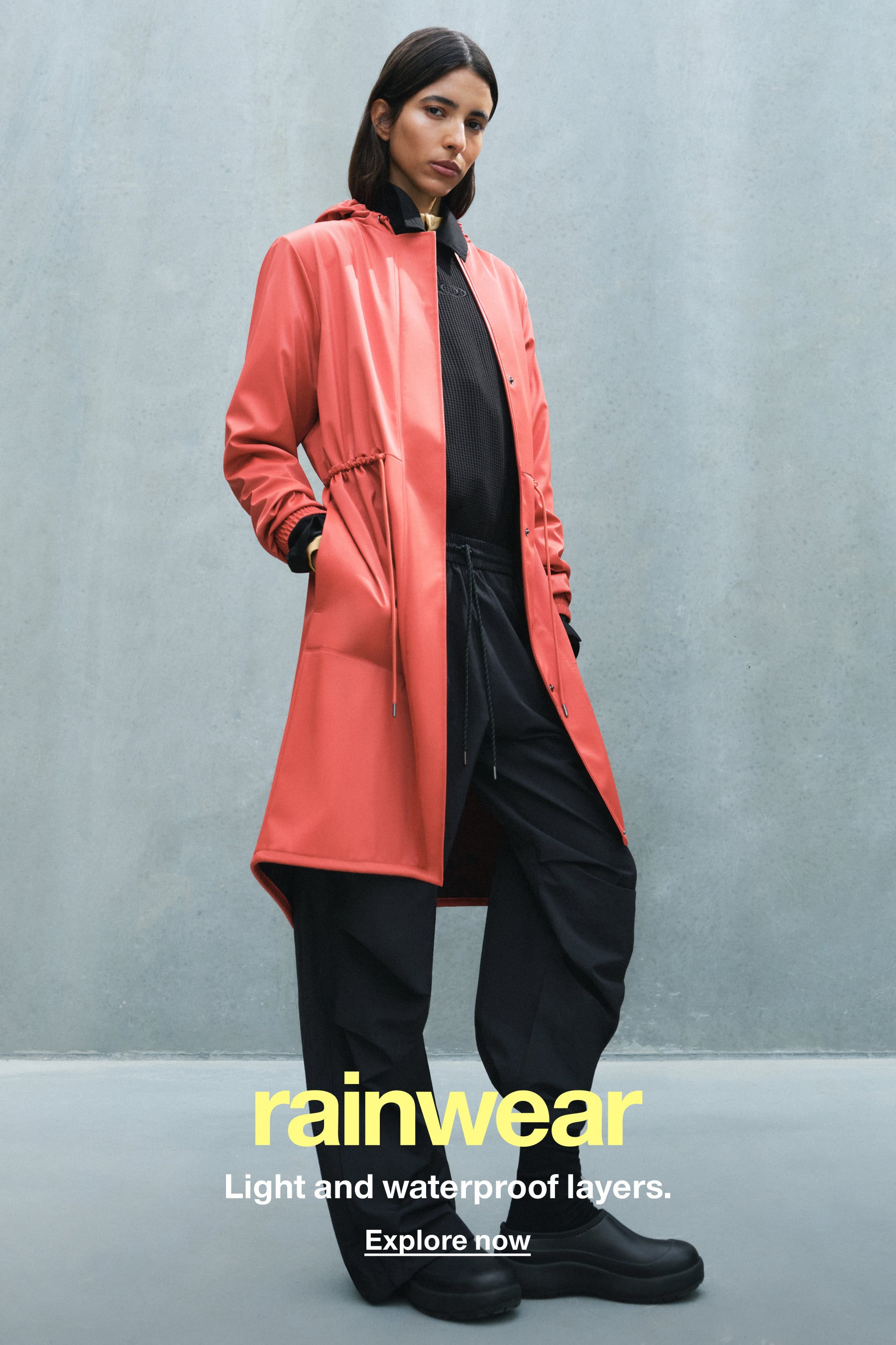 Utforska Rains herrkollektion, inklusive regnjackor, pufferjackor, västar, skjortor, byxor och väskor. Kollektionen erbjuder ett brett utbud av olika färger och silhuetter.