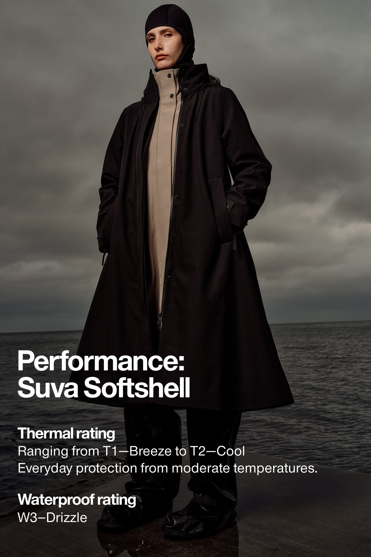Funktionell design för vardagen i staden. Suva Softshell är tillverkad av slitstarkt 3-lagersmaterial med ett varmt fleecefoder som ger både skydd och komfort. Kollektionen har moderna, korta, oversize och A-formade silhuetter.