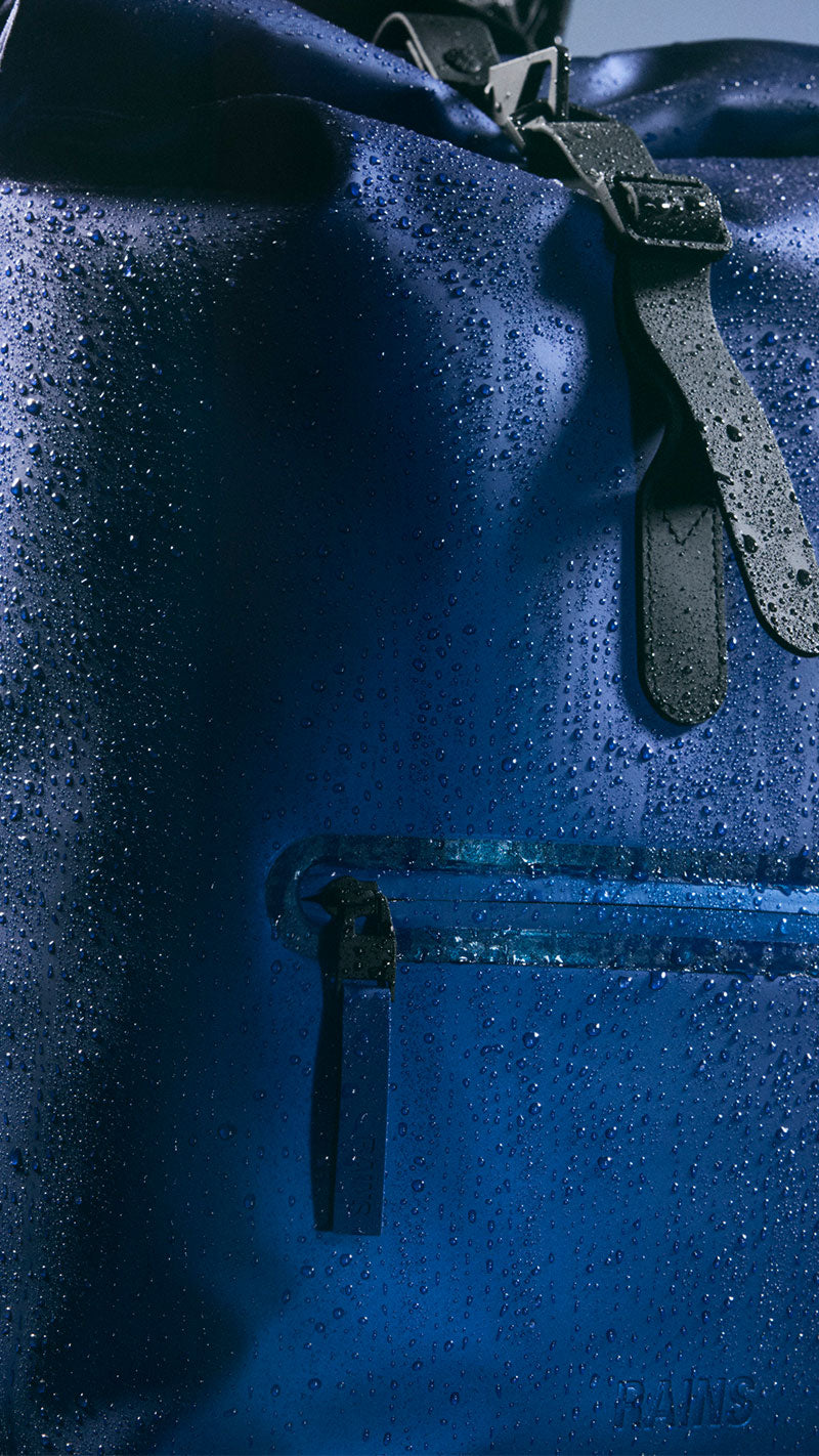 Inspirerad av de varaktiga egenskaperna hos karakteristiska regnrockar är Rains signaturformel för PU-belagt tyg framtagen för att stänga ute fukt. Signaturtyget, speciellt utvecklat för att möta kraven under resor, ger högre bärstyrka och hållbarhet.