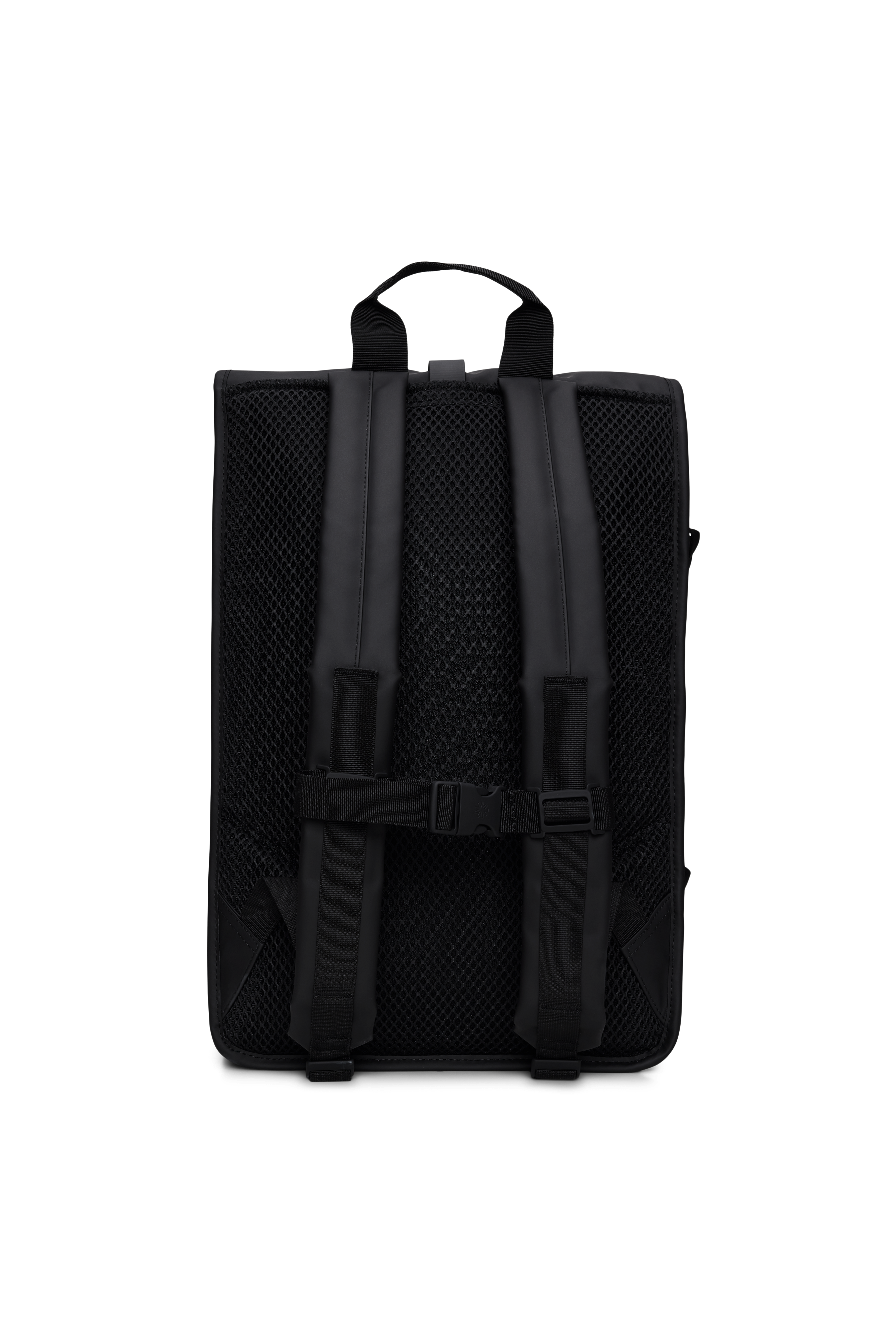 Rolltop Rucksack Large tillverkas av Rains vattentäta signaturtyg i PU, som har designats för slitstyrka, hållbarhet och en mjuk känsla.