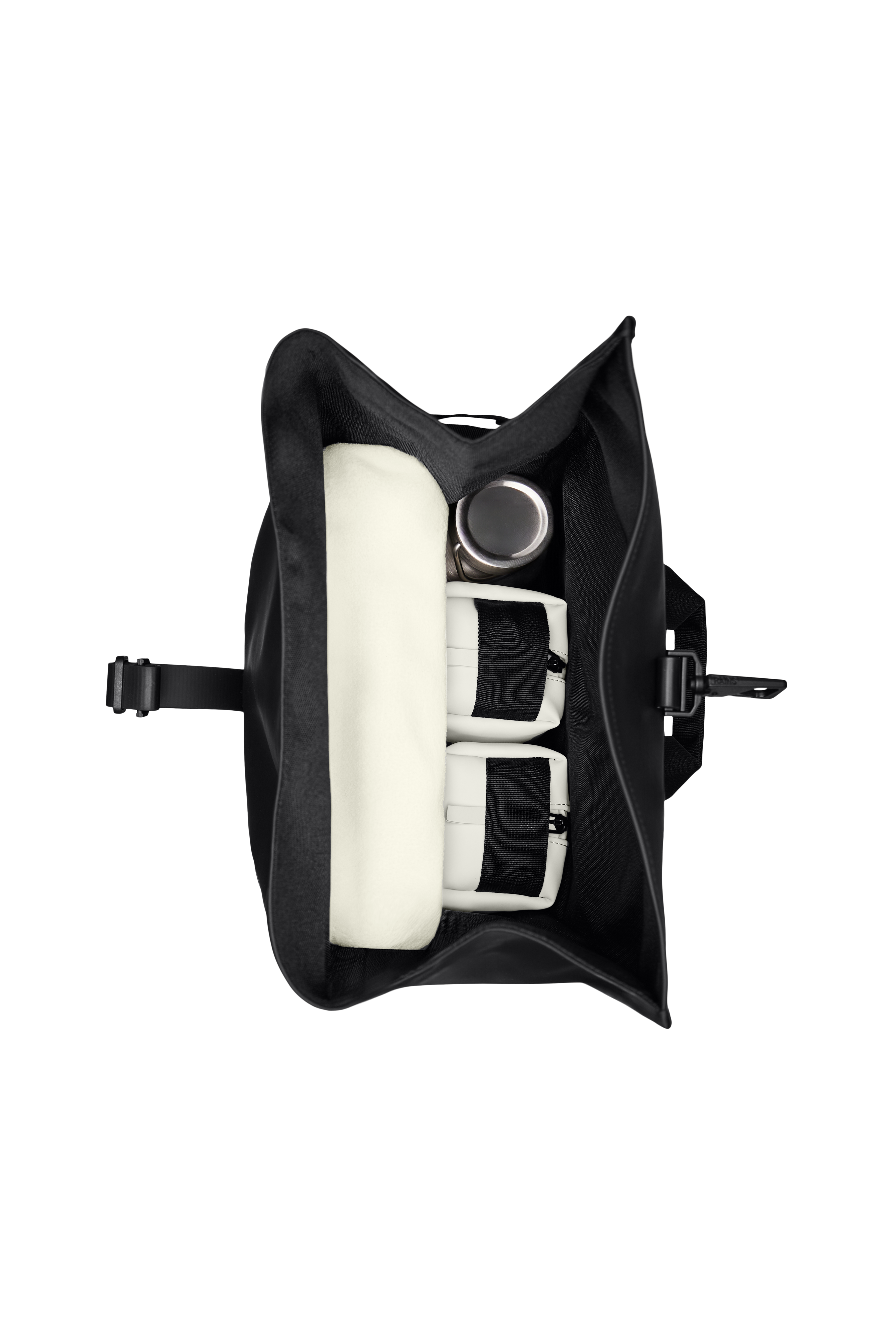 Rolltop Rucksack är en basväska som skyddar dig mot nederbörd när du tar dig mellan punkt A och B, optimerad för att du bekvämt ska kunna pendla på cykel eller till fots. För att viktiga sakerna mot regn, rulla ihop signaturryggsäcken riktigt tight och stäng den med den karaktäristiska karbinhaken.
