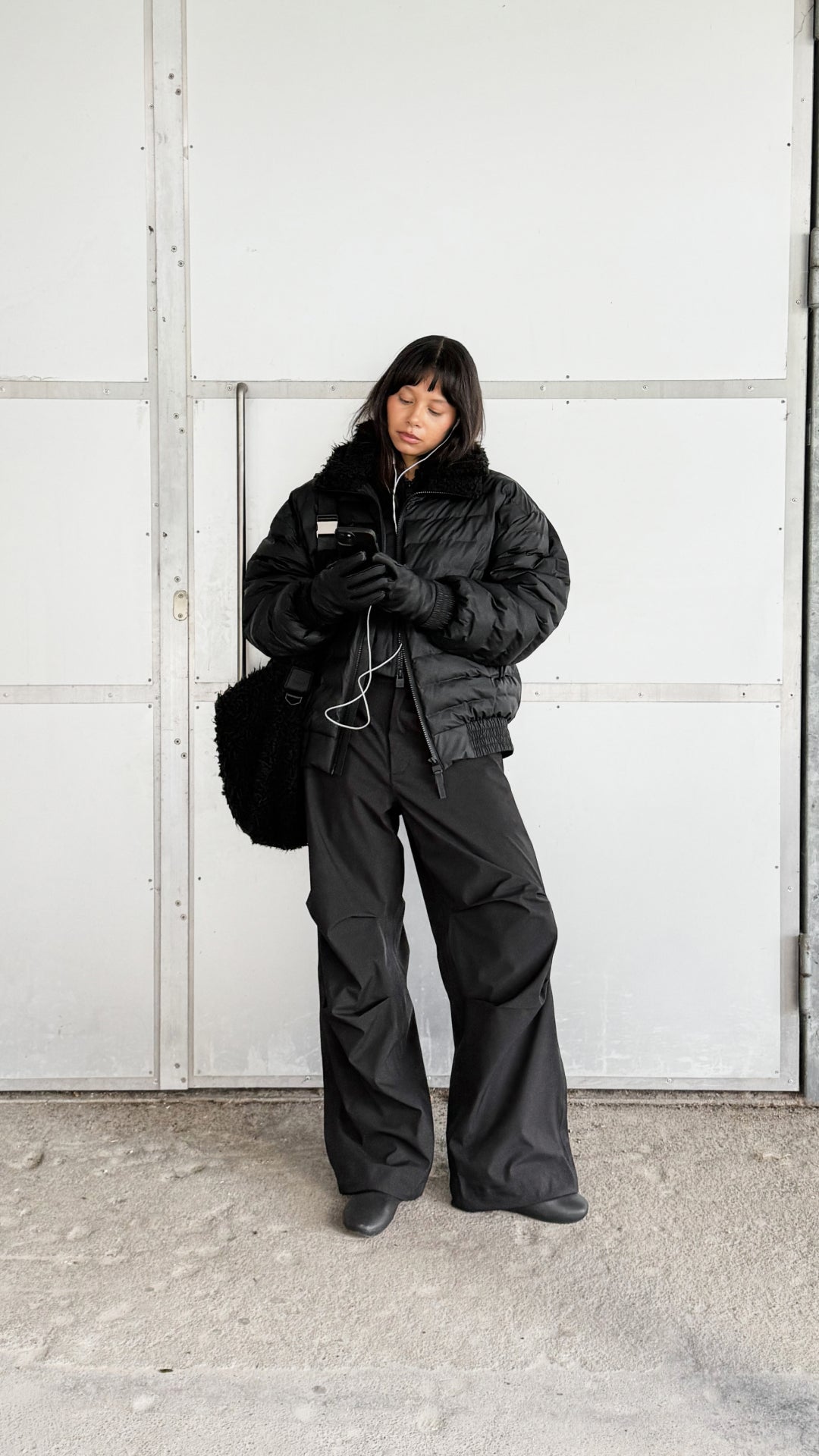 Denna Vision-modell har dolda fleecefodrade sidfickor och en innerficka med dragkedja. Den voluminösa silhuetten har en krage med fleecefoder med struktur och ribbdetaljer i fållen.