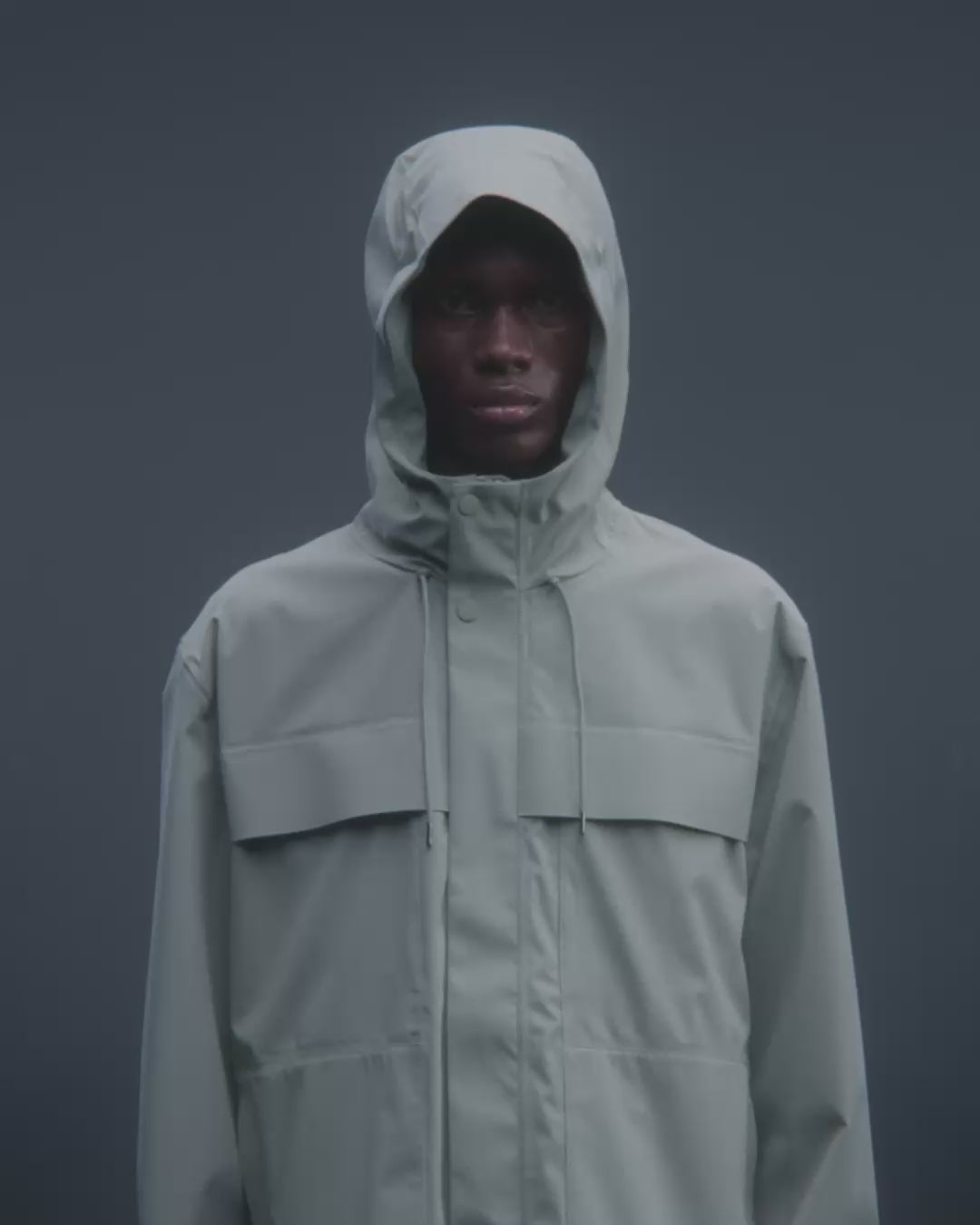 Tested. Proven. Ready for everyday repetition. This versatile concept forms the city's new wet weather uniform. Part of the Rains world, very much its own icon. Crafted with a 3L fabrication for waterproof and windproof endurance—with a mechanic stretch for comfortable urban exploration.
